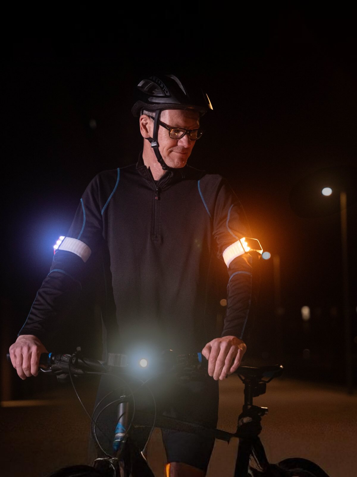 Höchste Qualität. Langlebig. Vielseitig. Unkompliziert. High-Tech Armbänder mit gestengesteuertem Blinker, automatischem Bremslicht, ultrahellen 360° LEDs und einzigartiger Navigation schützen Dich und dein Fahrrad vor Unfällen.