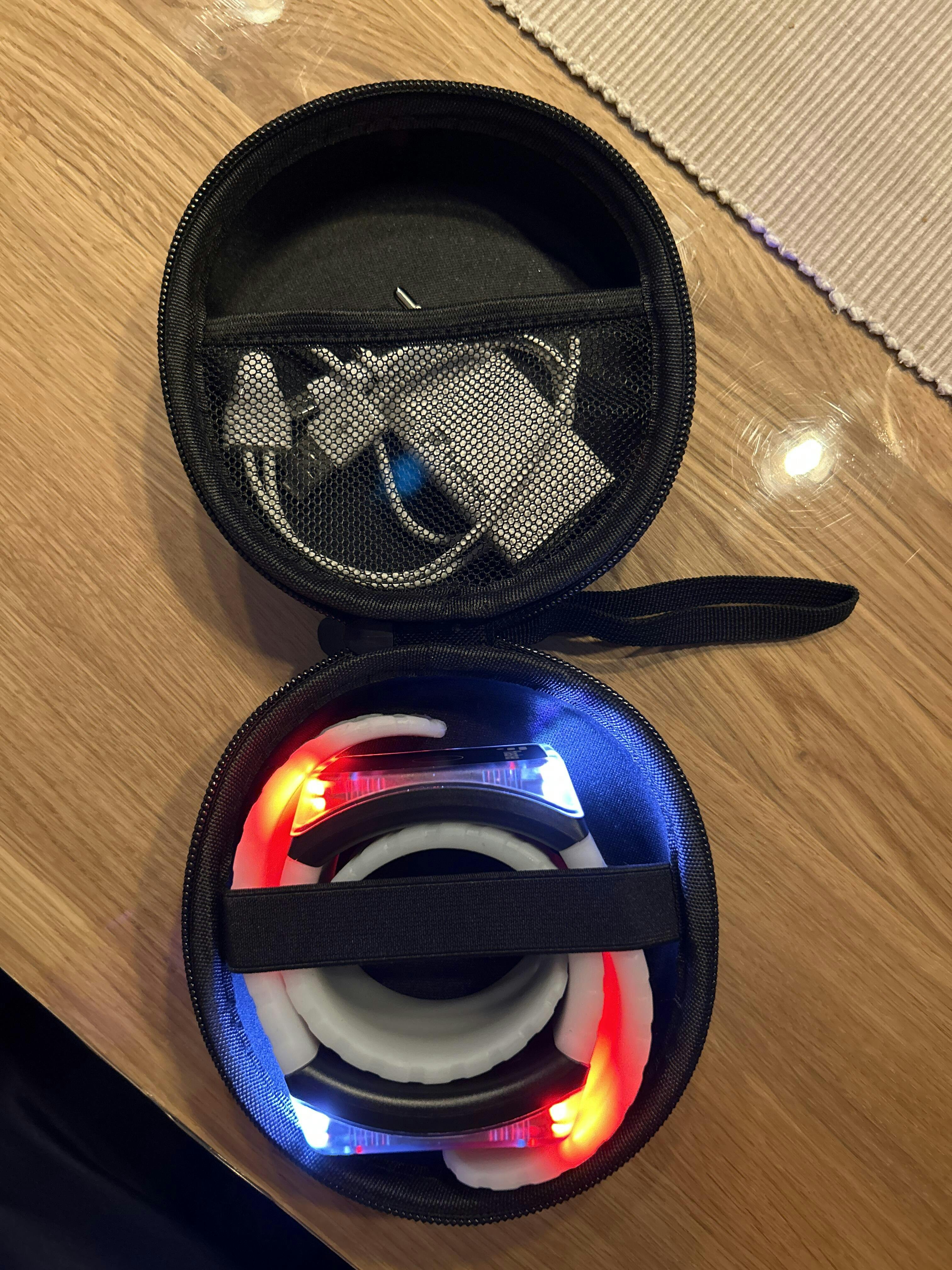- 1x Schutzhülle mit Platz für 2 Blinker-Armbänder, Netzteil & Ladekabel