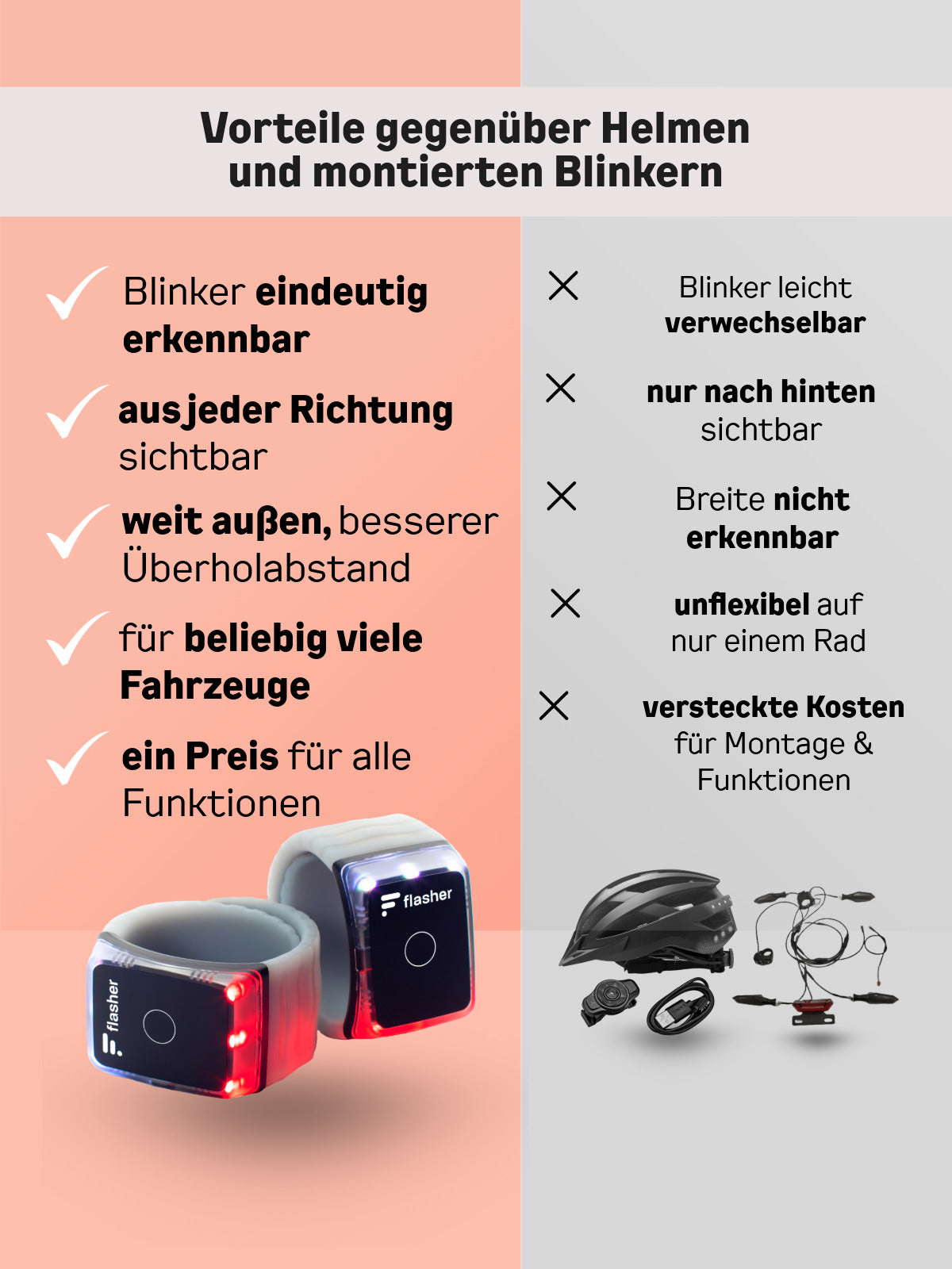 Täglich werden unzählige Radfahrer im Verkehr übersehen, stürzen und werden verletzt. Das ändert sich jetzt. Flasher ist der brillianteste Blinker deines Lebens.