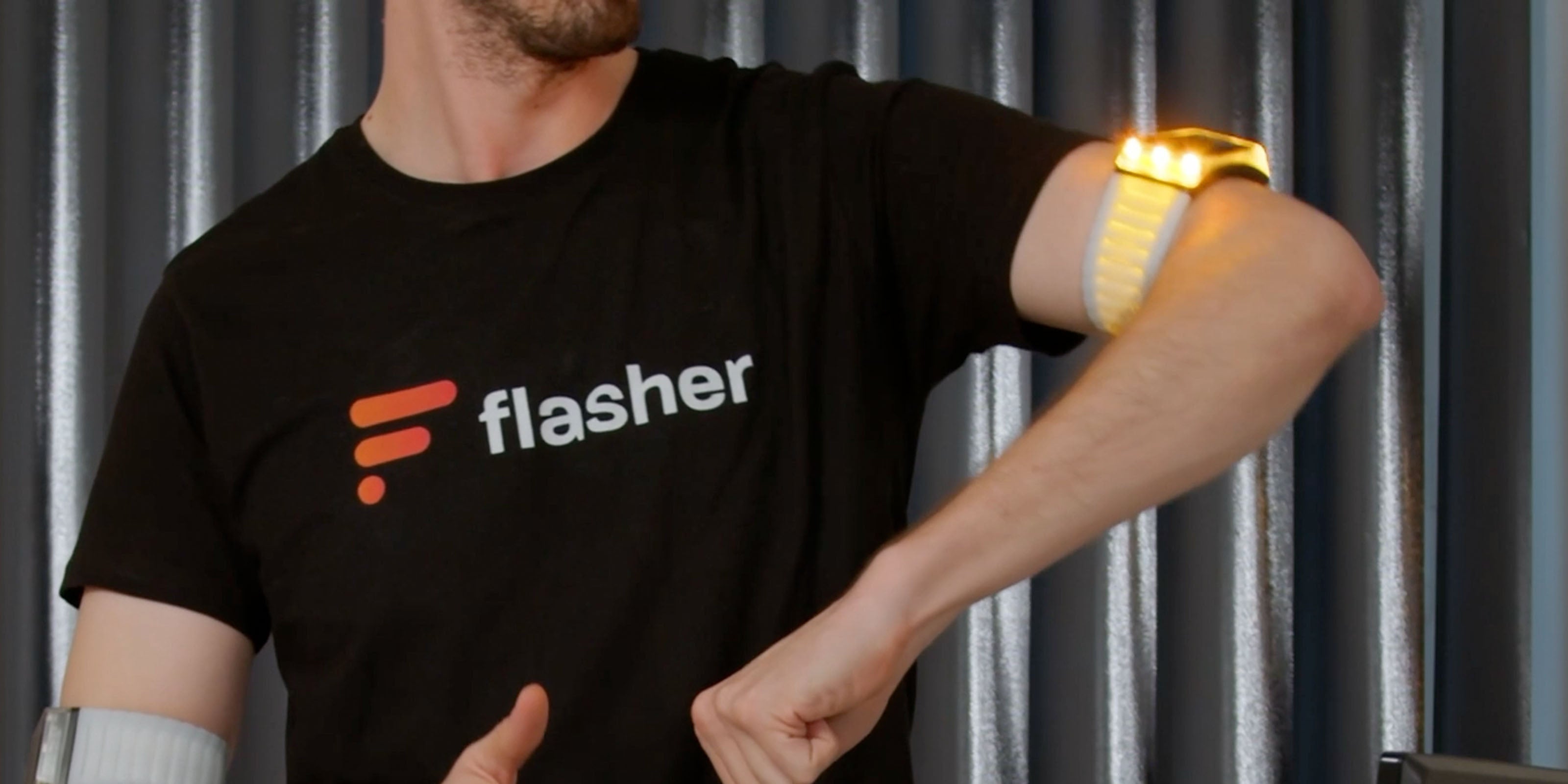 Hier erfährst du in aller Kürze, wie du Flasher richtig anlegst und verwendest. Mehr Details zur Bedienung deiner Blinker-Armbänder findest du weiter unten in unseren Erklär-Videos.